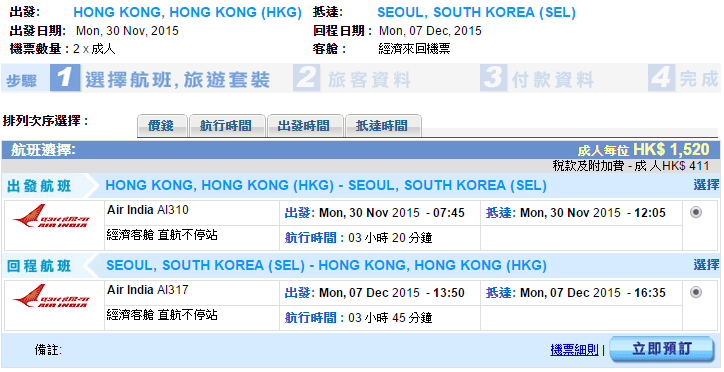 香港往返首爾二人同行每人只需$1,520,連稅$1,931