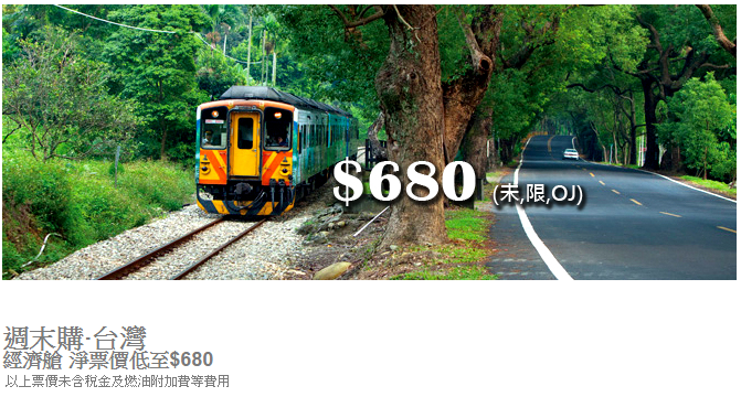 香港往返台北/高雄/台中/台南只需$680,連稅$1,013