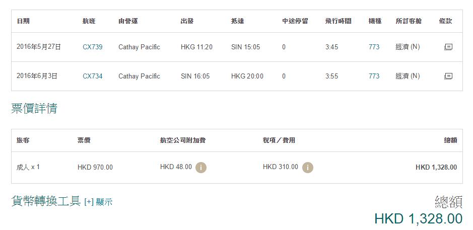 國泰新加坡全年優惠出發日期都延長去到明年5月27日