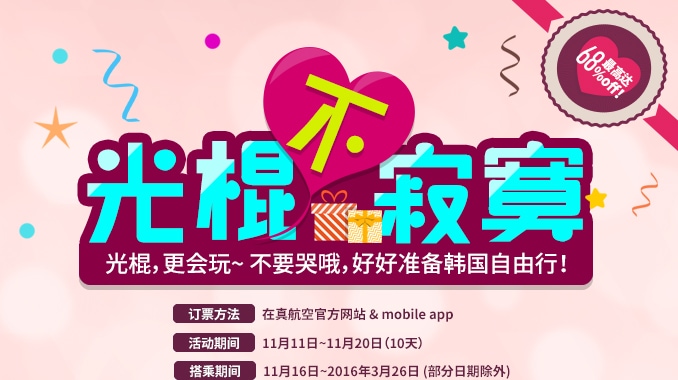真航空今日推出限時10日香港同澳門飛首爾雙11優惠