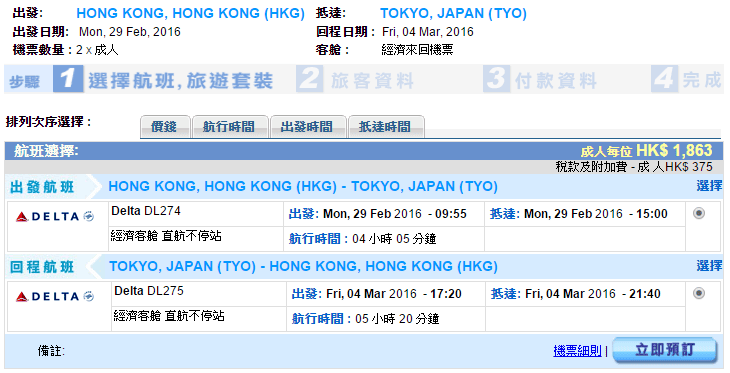 抵呀!早去晚返!兩件各23kg行李!香港直航往返東京只需$1,863 – 達美航空 (優惠至12月3日)