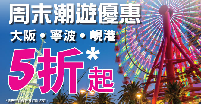 周末半價優惠!香港飛峴港來回$380,大阪$702,寧波$328– HK Express (優惠至11月29日)