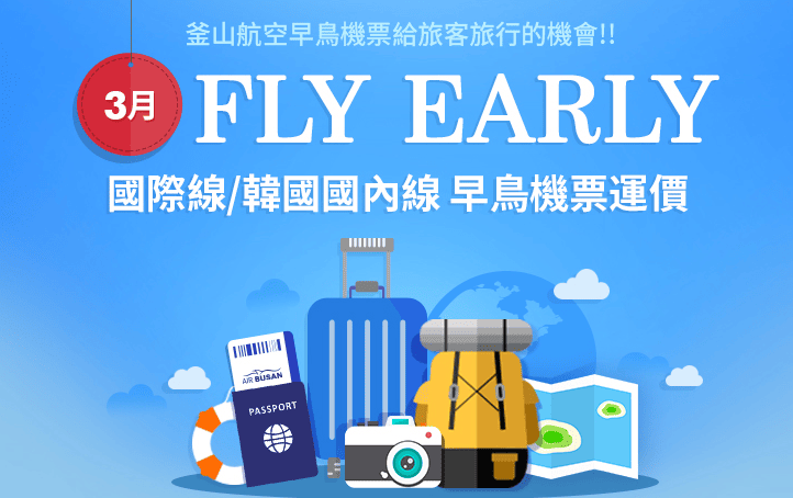 釜山航空會係聽朝9點推出左明年3月份早鳥優惠