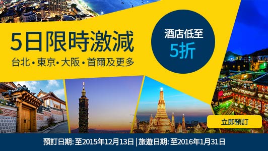 Expedia HK 今日推出左日韓台東南亞酒店限時5天優惠
