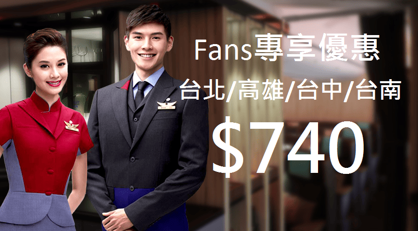Fans專享優惠!明年3月31日前出發!香港往返台北/高雄/台中/台南只需$740 (可open jaw) – 中華航空