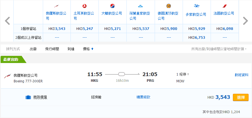 經我們測試,以布拉格3月7日入,3月16日走為例