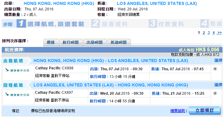 經我們測試,以洛杉磯7月7日出發,7月20日返回為例