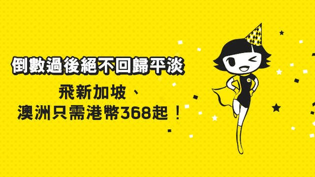 香港飛新加坡單程連稅$368,來回連稅$758