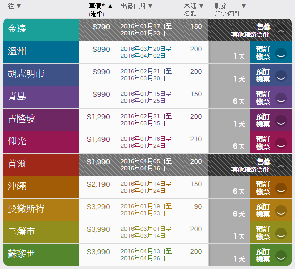 早上8時開賣!國泰 x 港龍 第168期 fanfares 涵蓋11個城市只需$790起 – 國泰航空 / 港龍航空