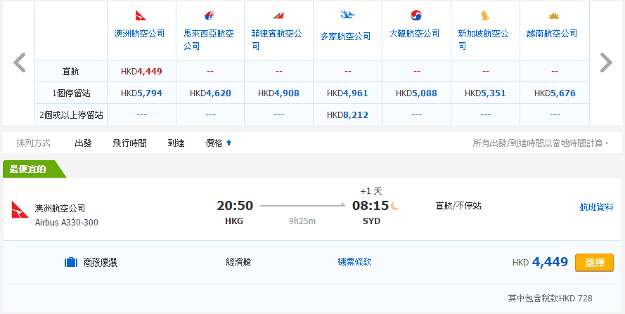 經我們測試,以悉尼8月2日出發,9月1日返回為例