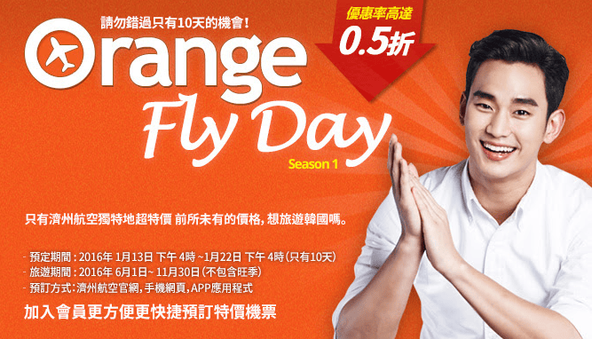 嘩!濟州航空會係聽日(1月13日)下午4點推出震撼Orange Big Sale