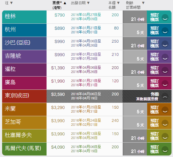 確實既出發日期就要到一陣8點由國泰港龍公佈,大家準時搶飛啦