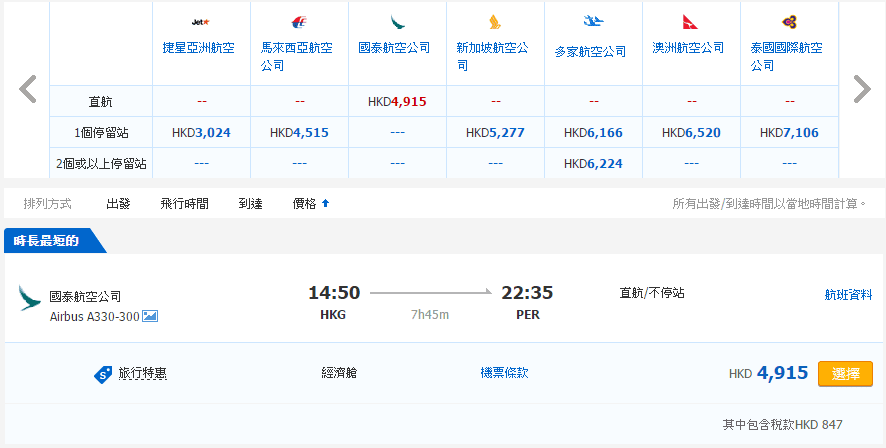 國泰還擊!11月30日前出發!香港直航往返澳洲各地只需$4,068 – 國泰航空 (優惠至1月31日)