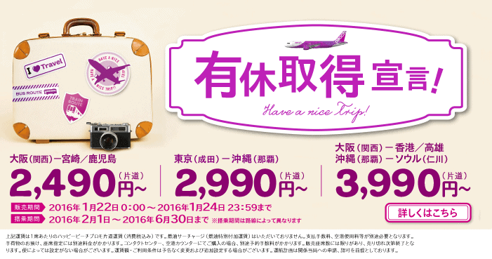 今晚11點開賣!大阪、沖繩飛香港單程只需3,990円起 – 樂桃航空 (優惠至1月24日)