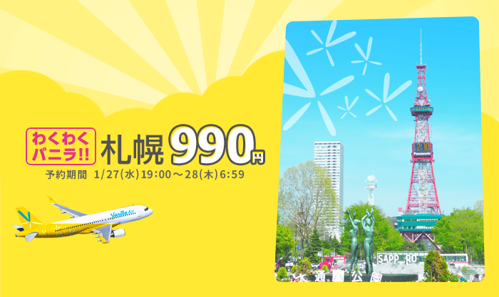 抵呀!下午6時開搶!6月30日前出發!東京飛札幌單程只需990円(約$65) – 香草航空 Vanilla Air (優惠至1月28日5:59am)