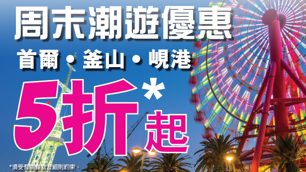 周末半價優惠!香港飛首爾/釜山/濟州來回$588,峴港$388 – HK Express (優惠至2月7日)