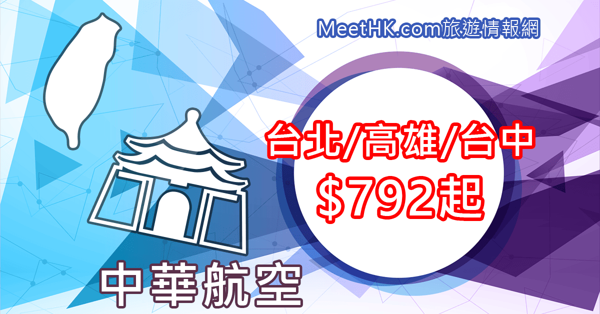 華航全年優惠!10月31日前出發!香港往返台北/高雄/台中$792起 (可open jaw) – 中華航空 (優惠至10月31日)