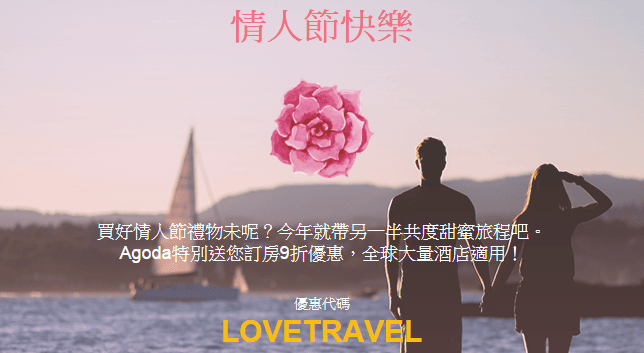 Agoda 10%折扣代碼:LOVETRAVEL (3月31日前入住同預訂有效)