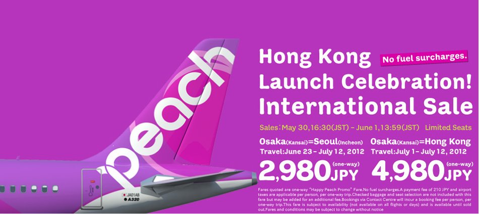 大阪往返香港單程只需4,980YEN (約港幣$490),呢個價已包燃油附加費,但就未包括機埸稅、付款手續費。而行李寄艙係需要另外俾錢