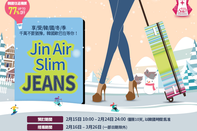 3月26日前出發!香港/澳門往返首爾只需$1,000起 – 真航空 Jin Air (優惠至2月24日)