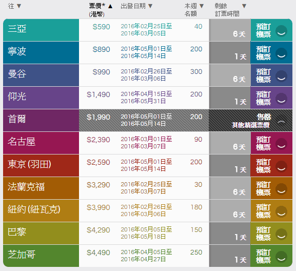 確實既出發日期就要到一陣8點由國泰港龍公佈,大家準時搶飛啦