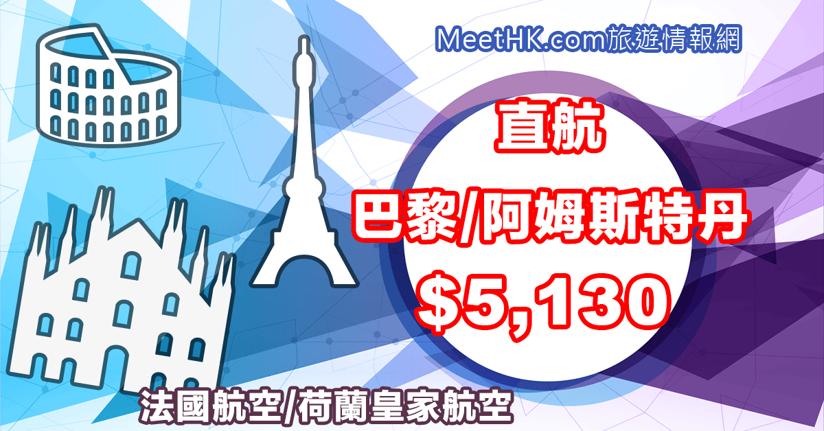 12月31日前出發!香港直航往返巴黎、阿姆斯特丹只需$5,130 – 法國航空/荷蘭皇家航空 (優惠至3月14日)