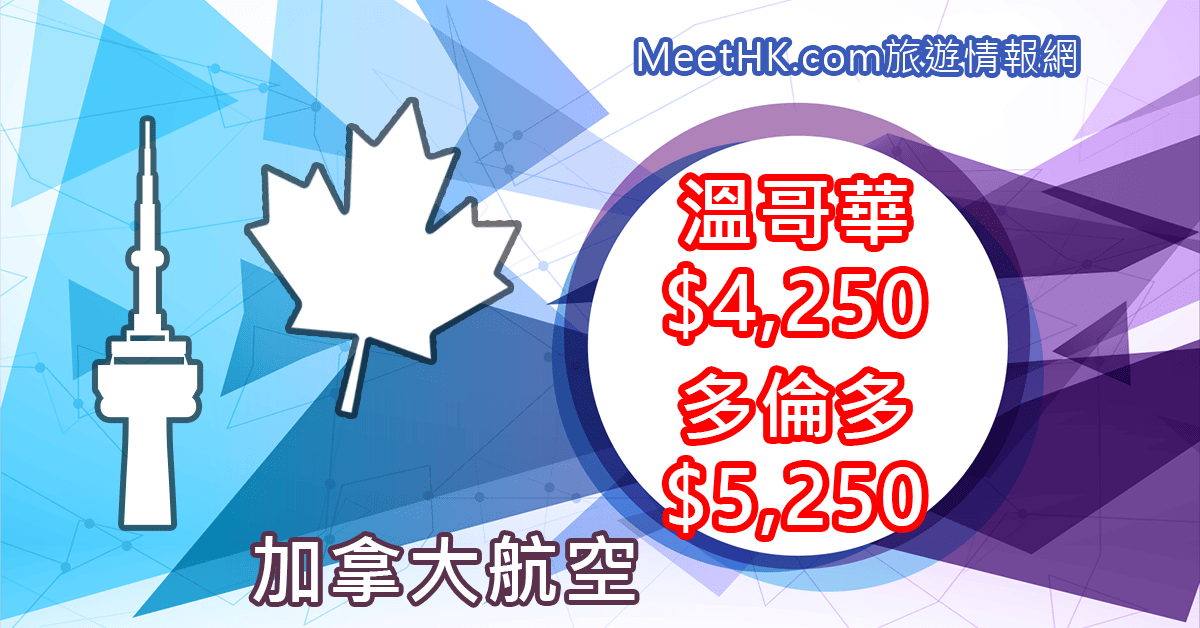 獨家減$300!12月16日前出發!香港直航往返溫哥華只需$4,250,多倫多$5,250 – 加拿大航空 (優惠至3月15日)