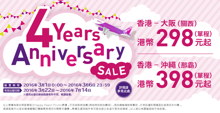 抵呀!今晚12點開搶!香港飛大阪單程只需$298起、沖繩$398 – 樂桃航空 (優惠至3月6日)