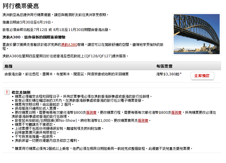 anyway,有優惠我地當然歡迎啦,尋晚介紹過 機票有效期一年!維珍航空 悉尼「二人同遊」每人只需 $3,380 – 維珍航空 (優惠至6月19日)
