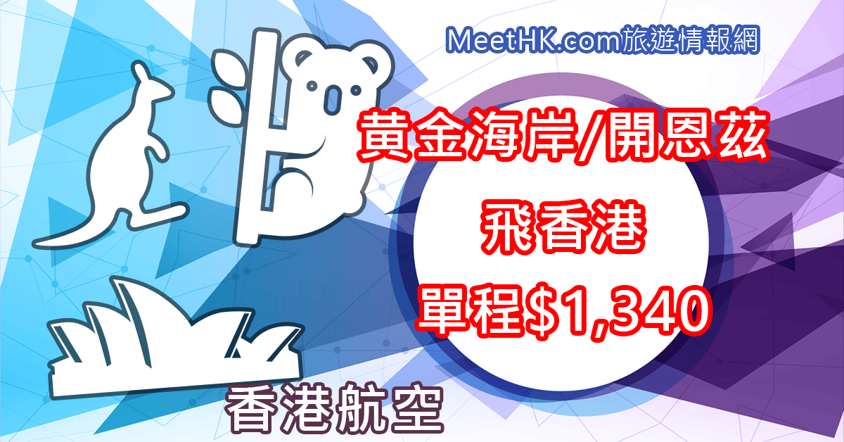 黄金海岸/開恩茲飛香港單程只需$1,340,連稅黄金海岸$1,863,開恩茲$1,950