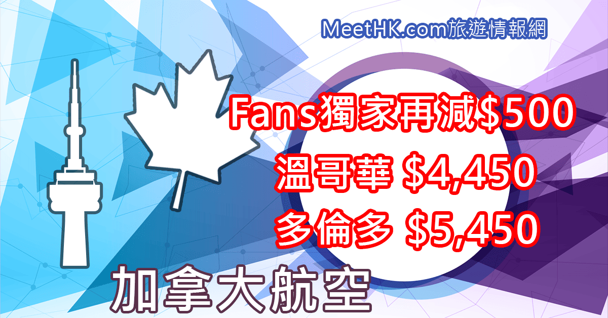 抵呀!獨家減$500!12月16日前出發!香港直航往返溫哥華只需$4,450,多倫多$5,450 – 加拿大航空 (優惠至3月22日)