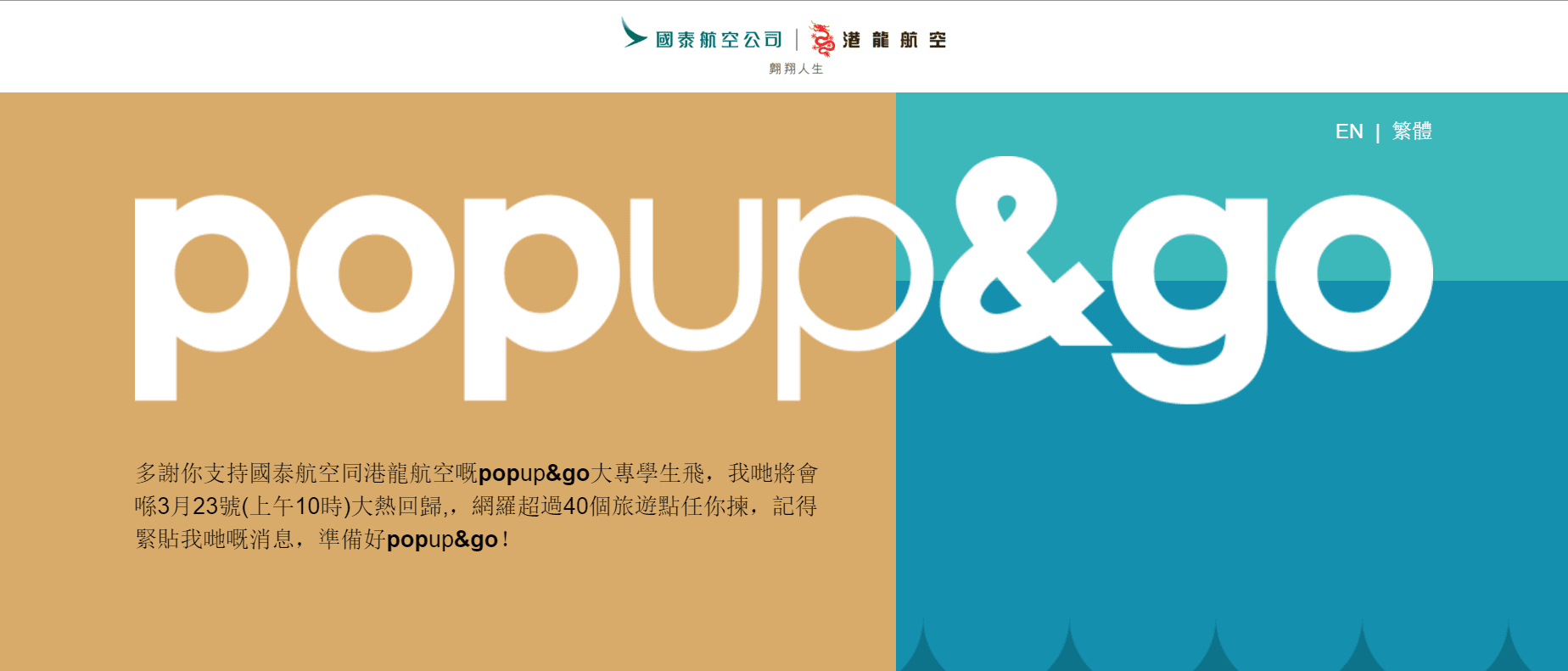 有興趣既話可以上國泰/港龍 popup&go 大專學生飛優惠專頁訂飛