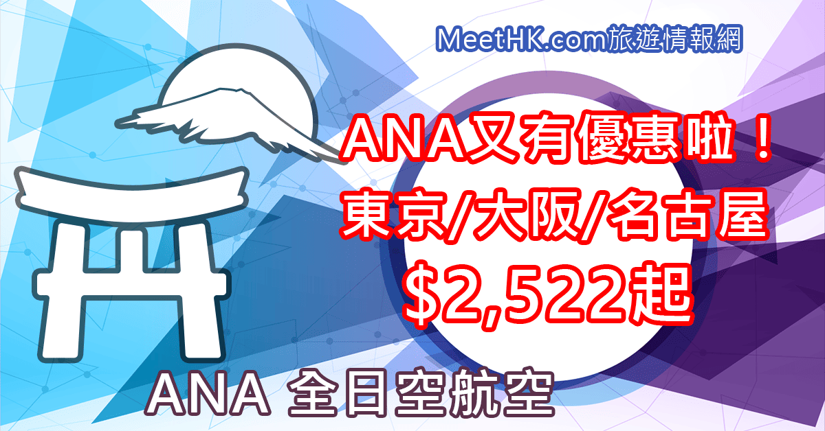 ANA又有優惠啦!9月30日前出發!兩件各23kg行李!香港往返東京、大阪、名古屋二人同行每人只需$2,522起 – ANA 全日空 (優惠至4月30日)