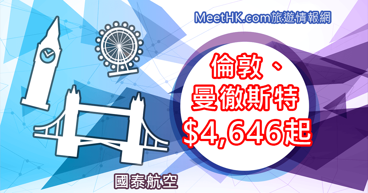 香港直航往返倫敦、曼徹斯特只需$4,646起,連稅倫敦$5,760、曼徹斯特$5,844
