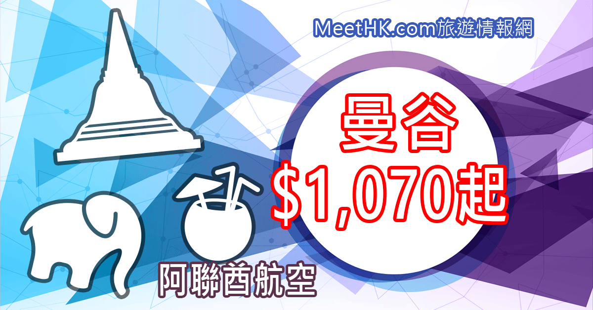香港往返曼谷只需$1,070,連稅$1,360,價錢唔錯