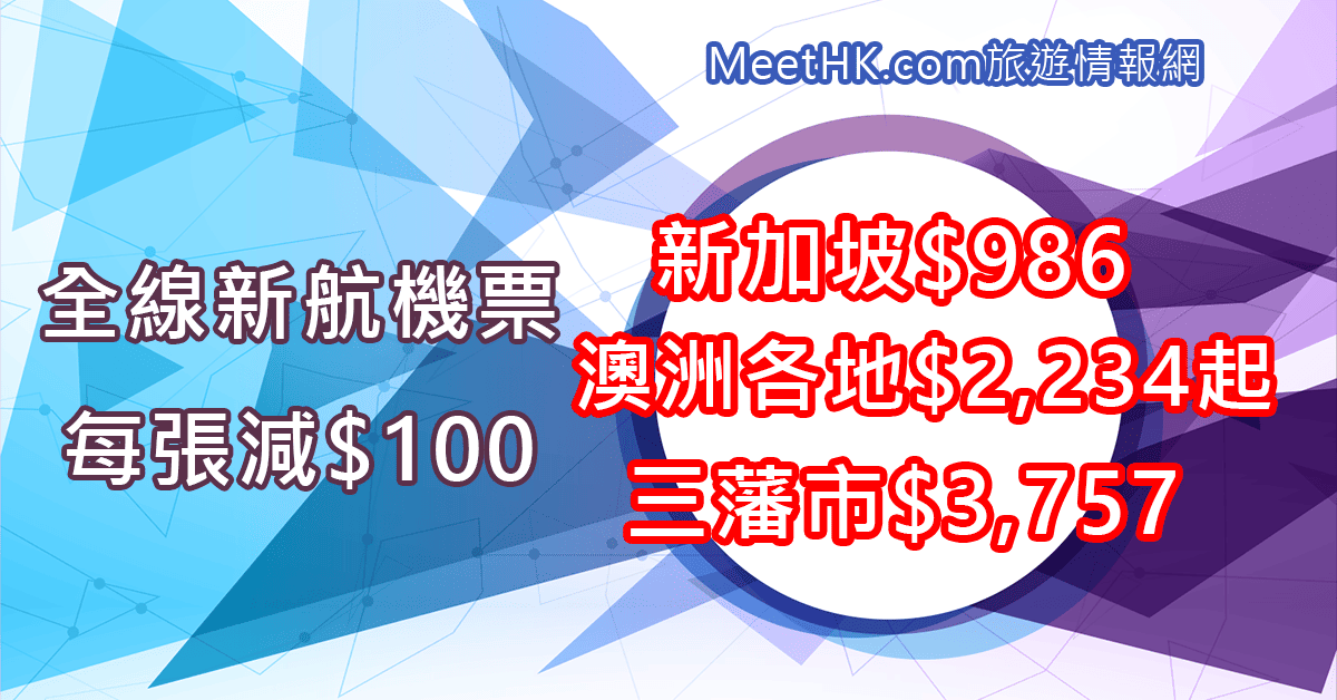 新航全線每張減$100!新加坡$986,澳洲各地$2,234起,三藩市$3,757 – Wefly.com.hk (優惠至4月11日)