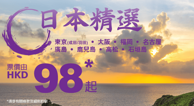 嘩!$98飛日本!今晚12點開搶!香港飛石垣島/高松單程只需$98;東京/大阪/福岡/名古屋/廣島$488;鹿兒島$688 – HK Express (優惠至4月8日)