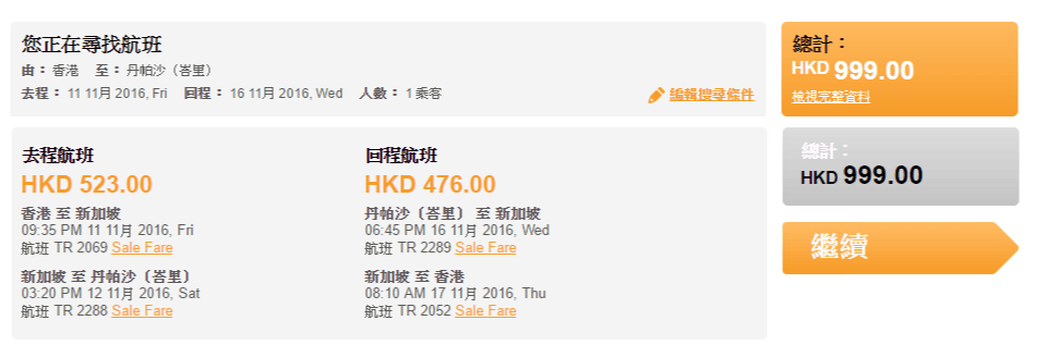 經我們測試,以峇里島11月11日出發,11月16日返回