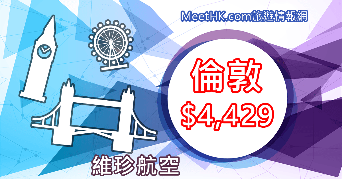 香港直航往返倫敦二人同行每人只需$4,429,連稅$5,817