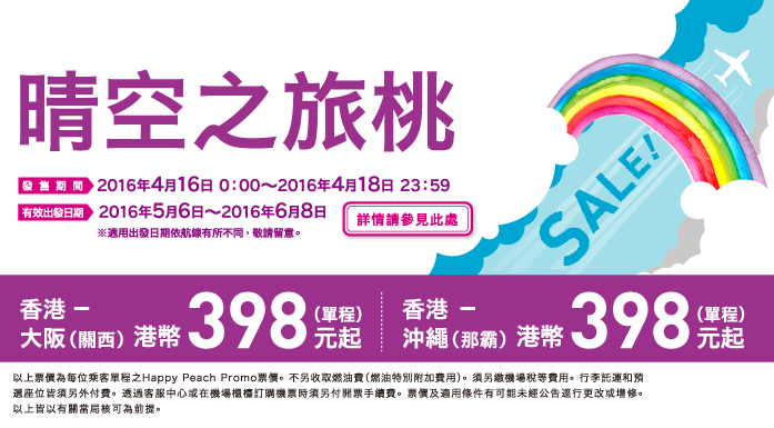 抵呀!今晚12點開賣!香港飛大阪、沖繩單程只需$398 – 樂桃航空 (優惠至4月18日)