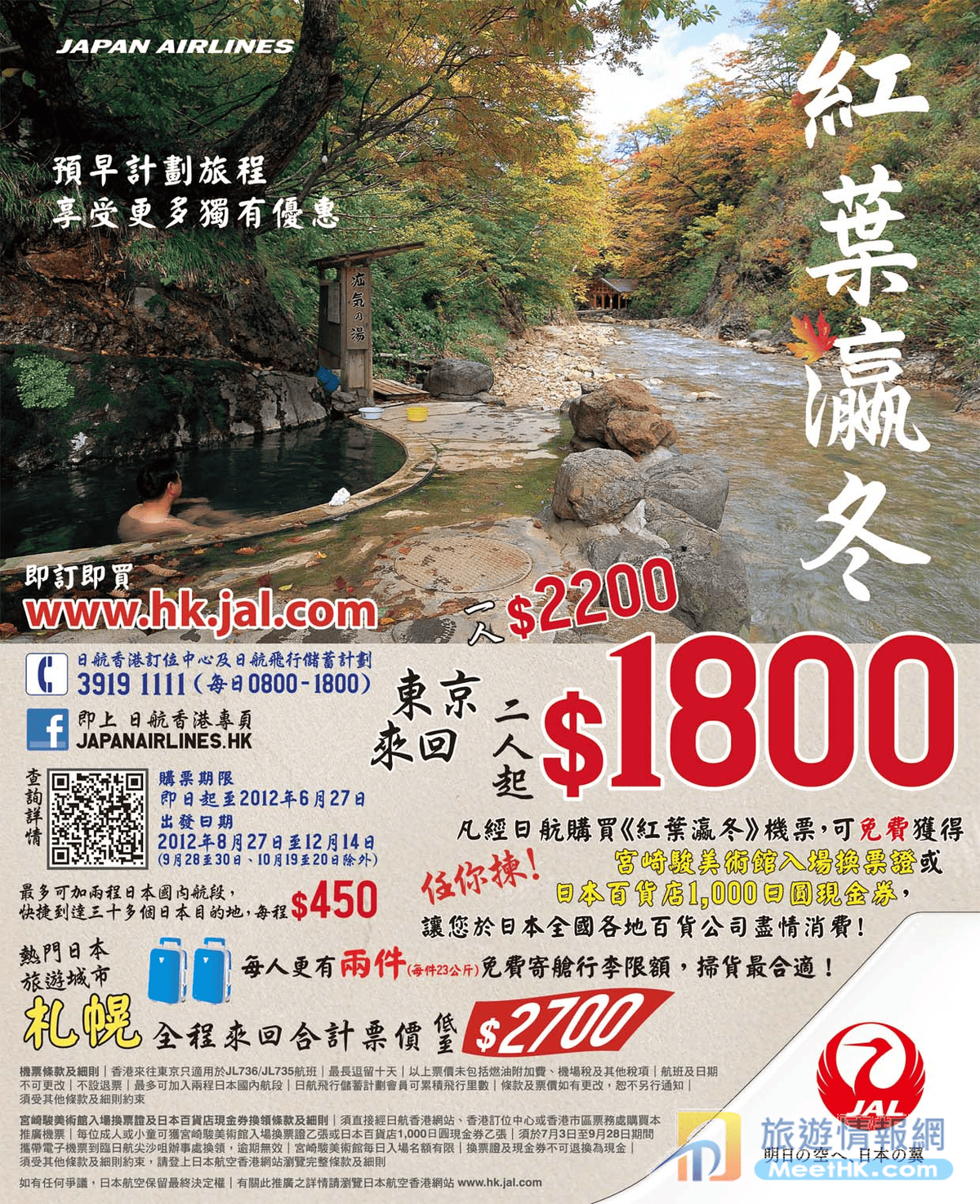 尋日我地收到日航既「紅葉瀛冬」東京機票新優惠,