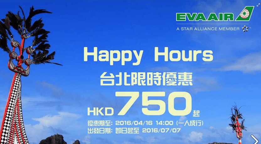 抵呀!連稅唔駛一千!長榮限時優惠!7月7日前出發!香港往返台北只需$750 – 長榮航空 (優惠至4月16日)