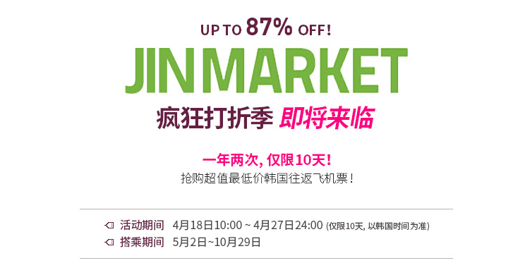 真航空會係聽朝9點推出一年兩次,限時10日香港同澳門飛首爾Big Sale