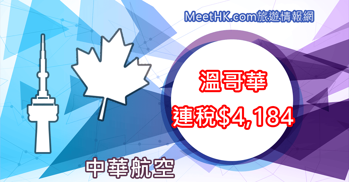 12月31日前出發!香港往返溫哥華只需$3,775 – 中華航空 (優惠至5月16日)
