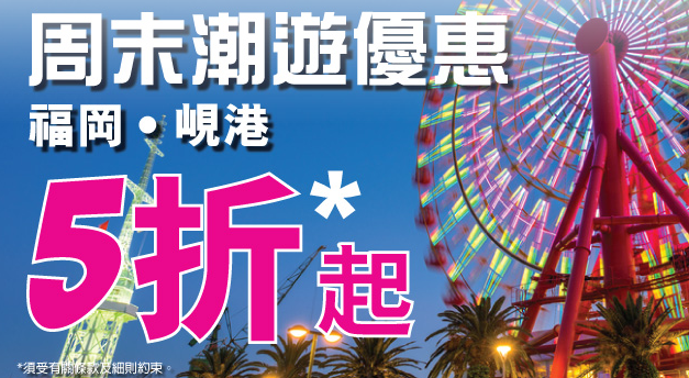 周末半價優惠!香港飛福岡單程只需$399、峴港$199 – HK Express (優惠至5月1日)