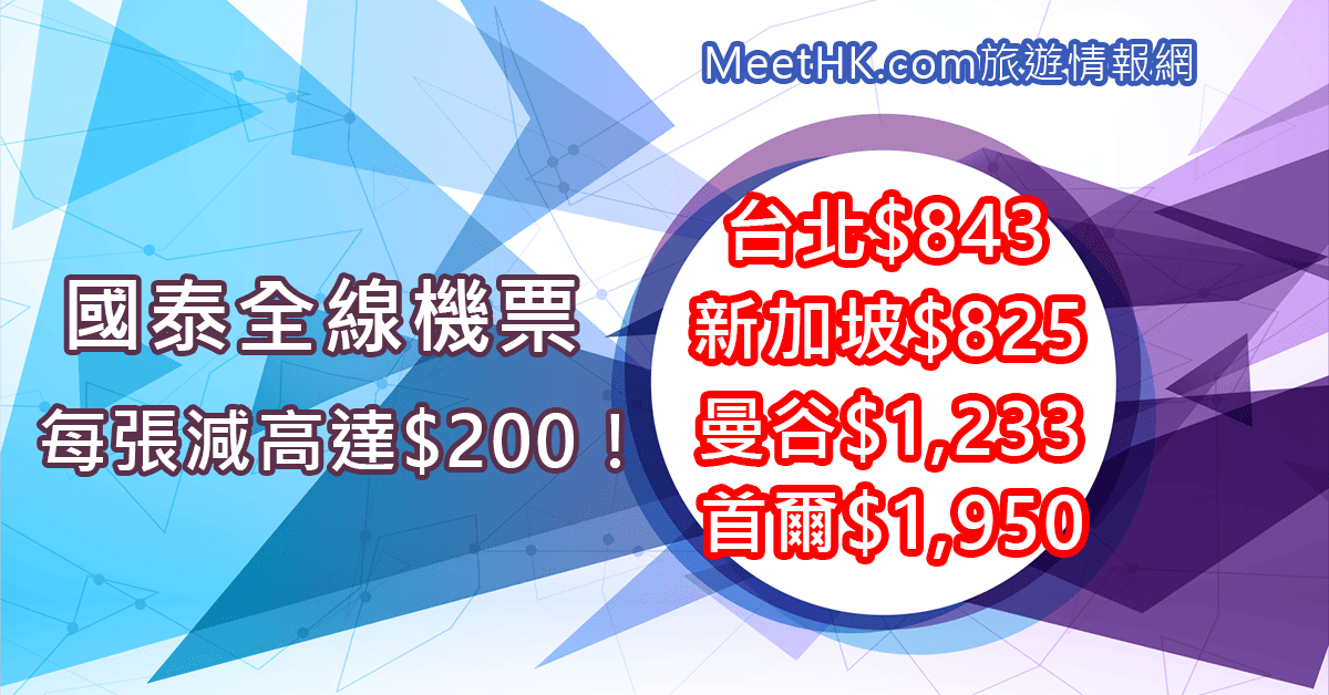 國泰全線機票每張減高達$200!台北$843,新加坡$825,曼谷$1,233,首爾$1,950,東京/大阪$3,242 – Wefly.com.hk (優惠至5月9日)