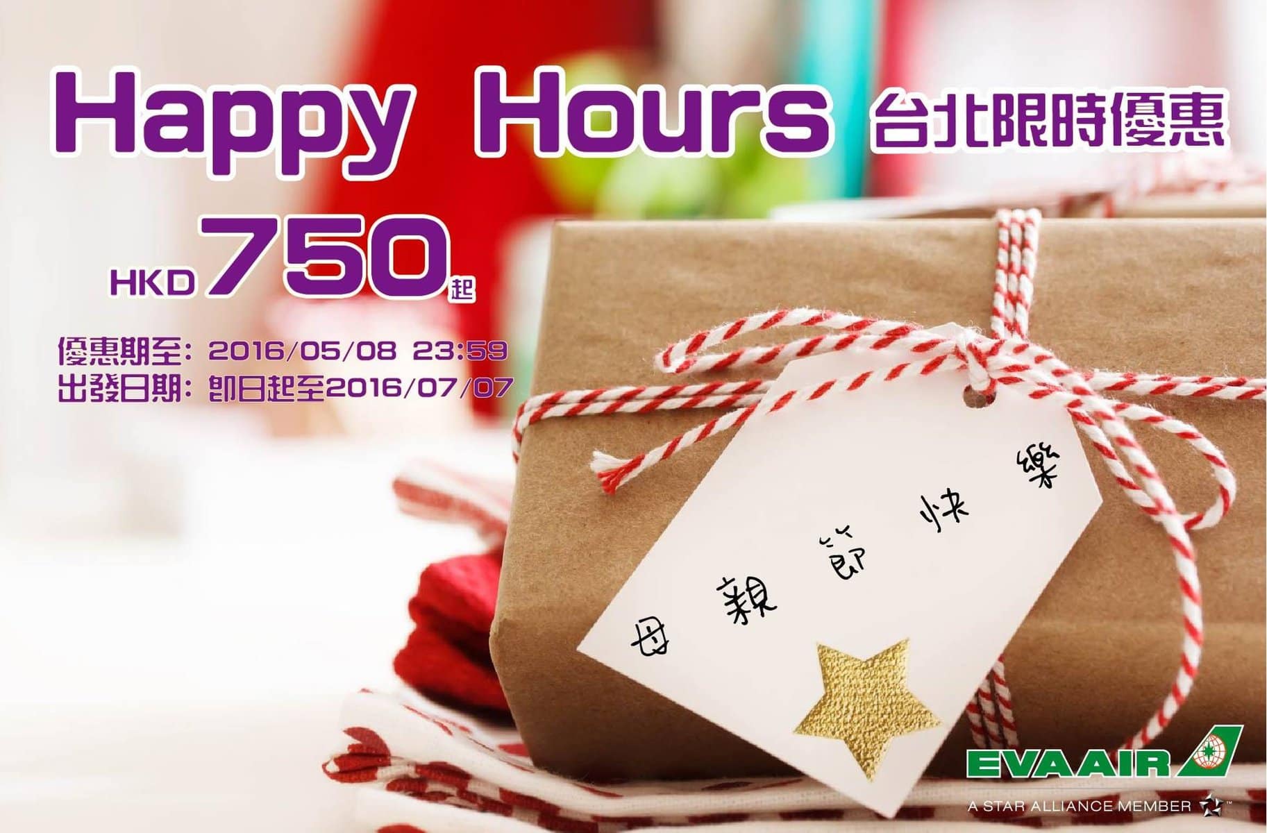 抵呀!連稅唔駛一千!長榮限時優惠!7月7日前出發!香港往返台北只需$750 – 長榮航空 (優惠至5月8日)