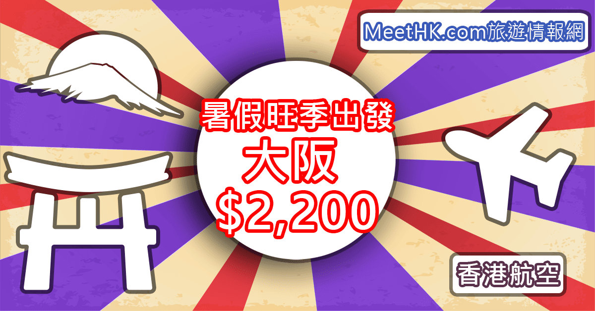 抵呀!暑假旺季出發!包20kg寄艙行李!香港往返大阪只需$2,200 – 香港航空 (優惠至6月17日)