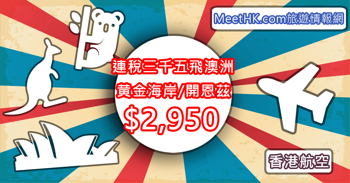 抵呀!連稅三千五飛澳洲!11月30日前出發!香港往返黄金海岸、開恩茲只需$2,950 – 香港航空 (優惠至6月14日)
