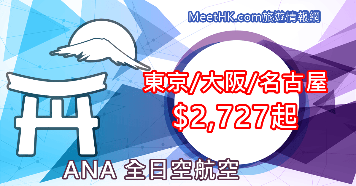 ANA又減啦!9月30日前出發!兩件各23kg行李!香港往返東京、大阪、名古屋只需$2,727起 – ANA 全日空 (優惠至6月10日)